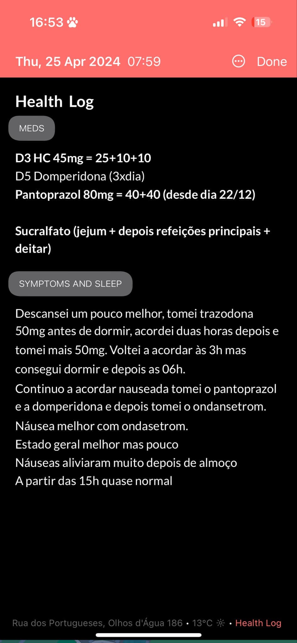 | P1 | 30 | F | Student | Portugal | Ulcerative Colitis (28); Axial Spondyloarthritis (axSpA) (28), Migraine (Childhood) |