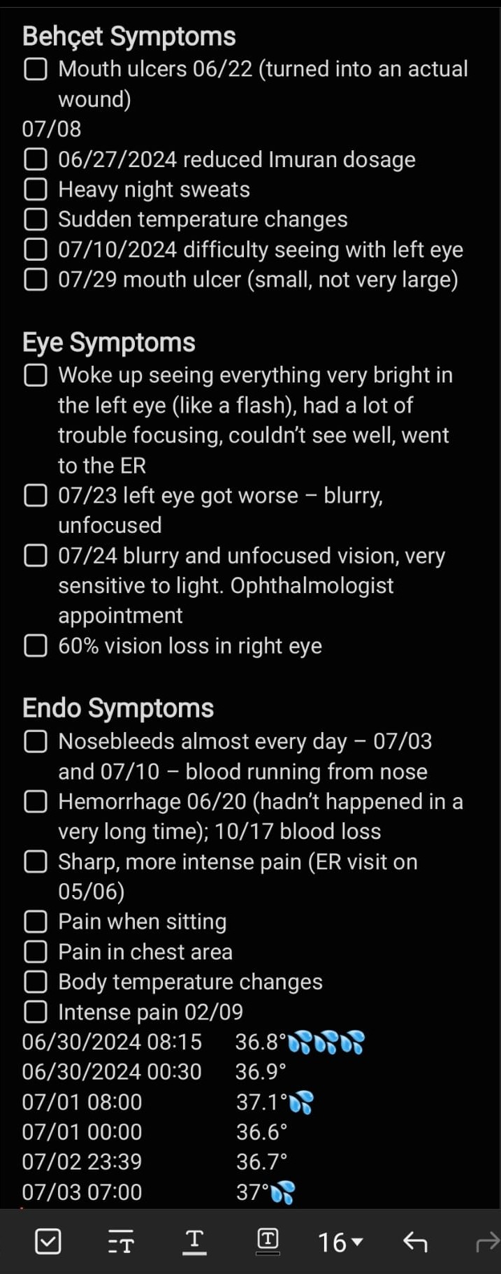 | P9 | 30 | F | Company Employee | Portugal | Endometriosis (27), Behçet’s disease (27), Autoimmune Neurological Disease (under investigation) |
